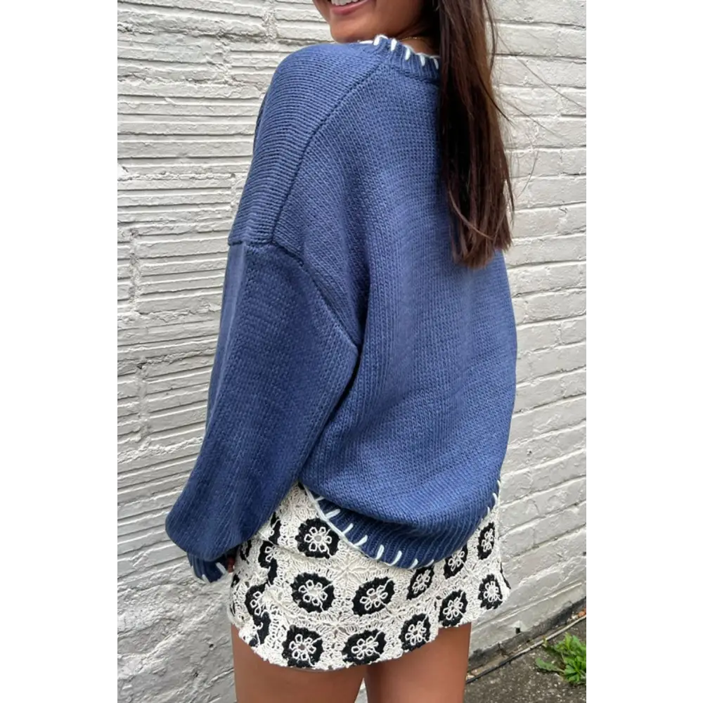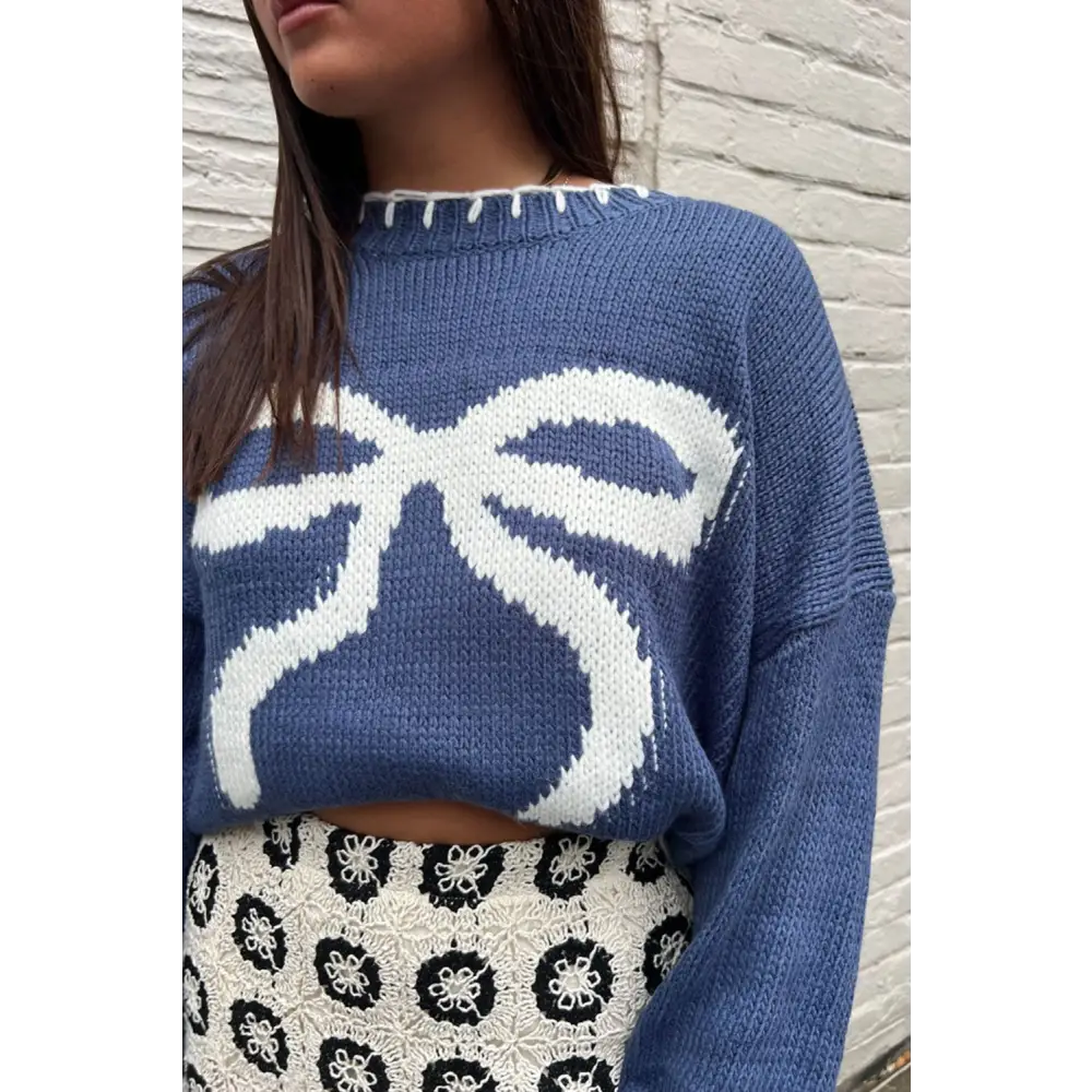 Bow Graphic Round Neck Long Sleeve Sweater