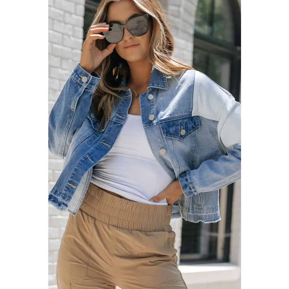 Stay effortlessly cool with our Distressed Button-Up Drop Shoulder Denim Jacket. Perfect for casual looks, this trendy jacket combines a relaxed fit with stylish distressed details.
